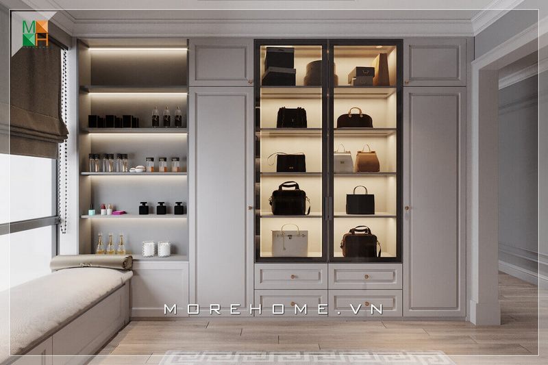 Mẫu tủ kệ âm tường cánh kính để đồ chung cư, nhà phố, biệt thự đẹp thiết kế âm tường kịch trần siêu đẹp và ấn tượng.