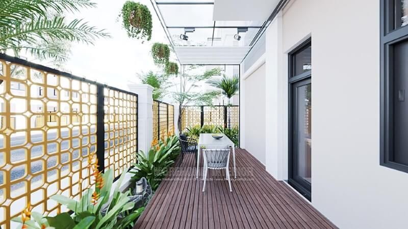 Lựa chọn thiết kế kiến trúc xanh tạo không gian thư giãn với mái hiên là dàn treo xanh ngắt có thể ngồi dưới để hưởng thụ những ly trà và trò chuyện