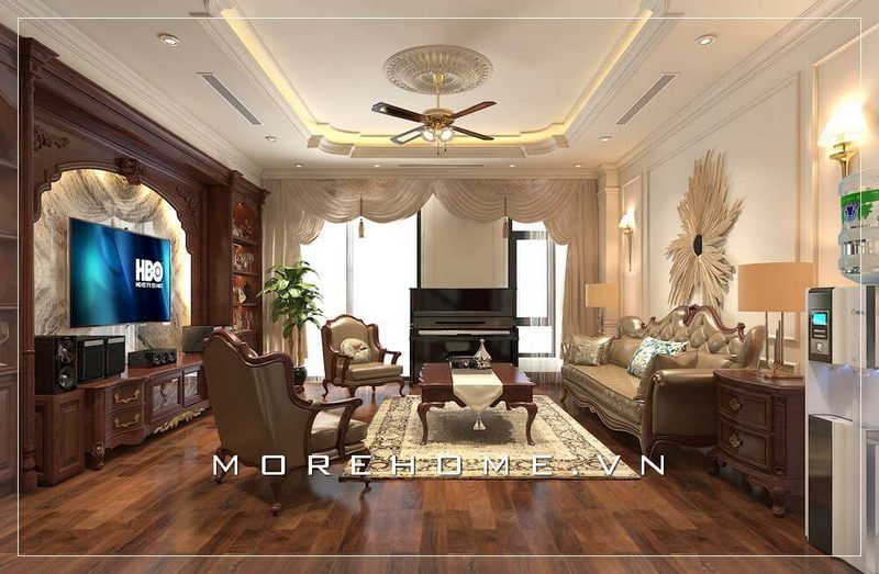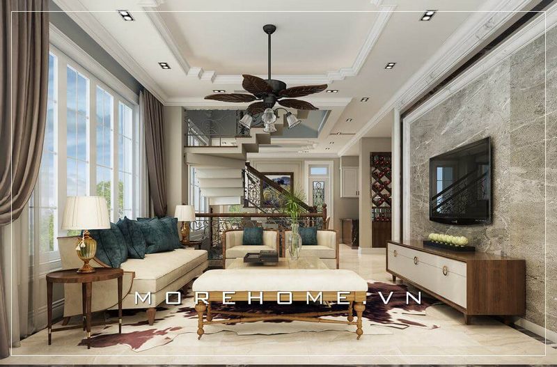 Thiết kế nội thất phòng khách biệt thự phong cách tân cổ điển sang trọng và đẳng cấp