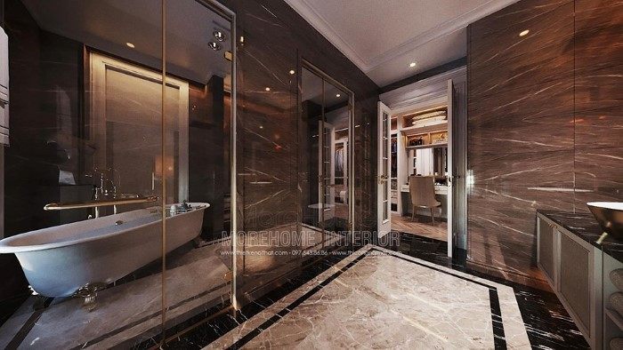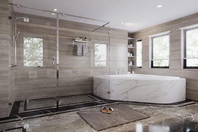 Phòng tắm biệt thự được thiết kế với đầy đủ mọi tiện nghi luôn là niềm mơ ước của rất nhiều gia chủ.
