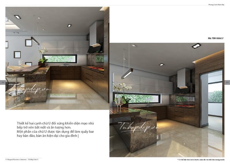 . Lối thiết kế gần giống âm tường, tạo ra một mặt phẳng gọn gàng, nội thất phòng bếp giúp tiết kiệm được diện tích lớn, tạo ra một không gian trống lớn để đáp ứng nhu cầu và mong muốn của gia chủ, phù hợp với các hoạt động sinh hoạt, vui chơi của cả gia đình.